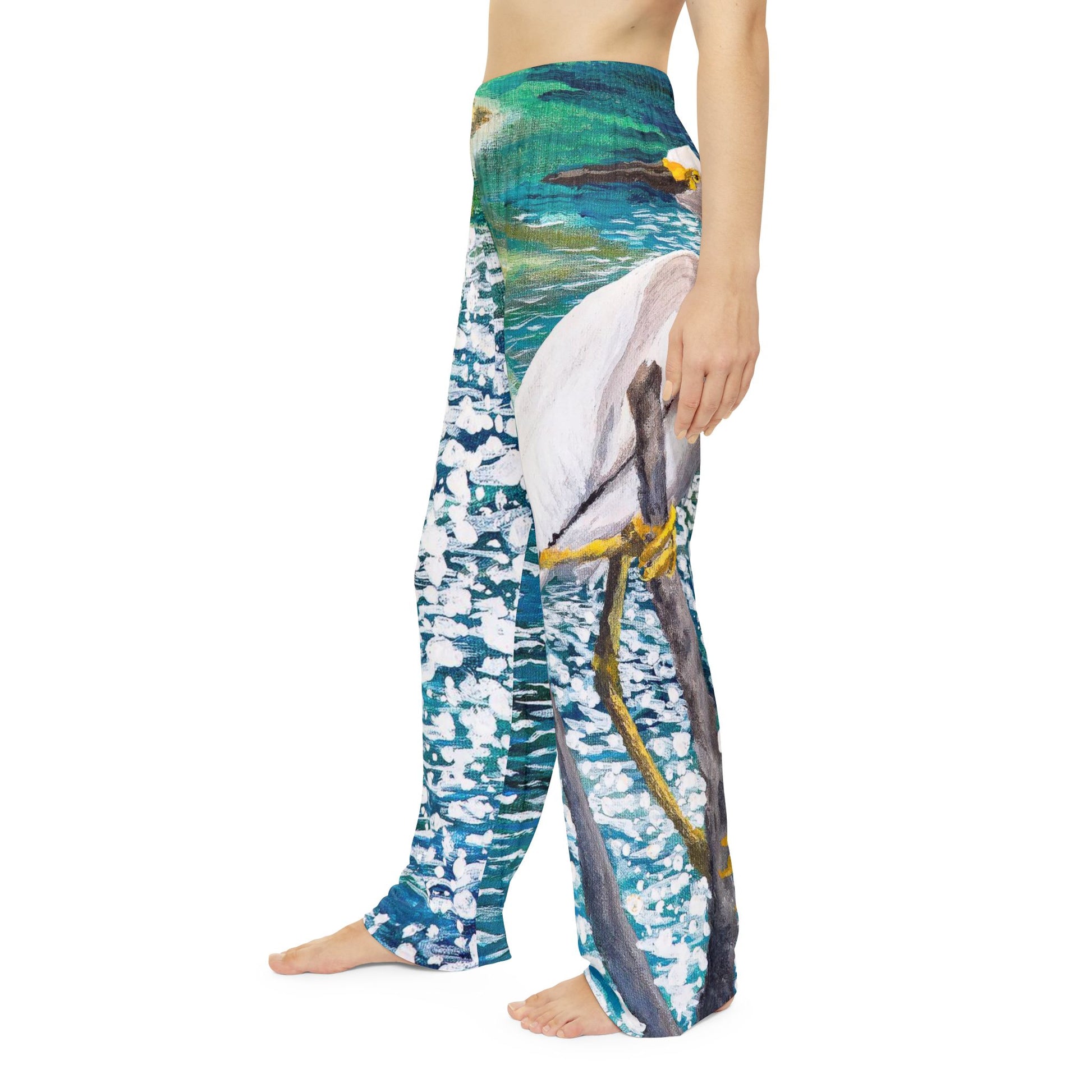 Comfort Pants - Egret Shorebird in the Sun Art Port Aransas Wildlife