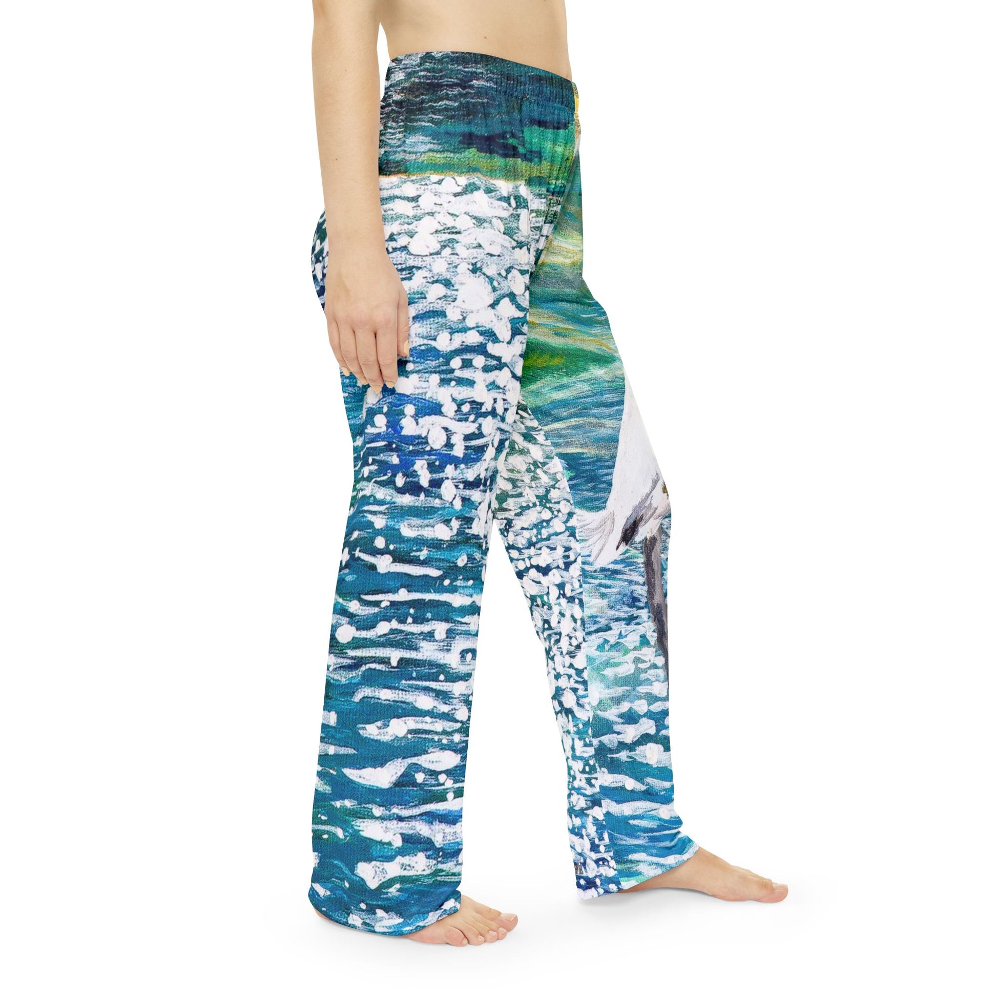 These comfort pants bring the hush of a coastal morning straight into your bedroom. Imagine standing on a sun-warmed jetty in Port Aransas: white egret silhouettes outlined against pale sky, salt air on your skin, and the slow, rhythmic hush of waves. The soft, lightweight fabric moves with you — lounging, stretching, or reaching for that second cup of coffee — while the elastic waistband keeps everything comfortably in place. The subtle wildlife artwork reads like a quiet memory, the kind that slips into your day and makes ordinary mornings feel like small escapes to the shore.